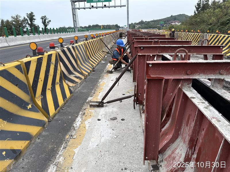 西湖溪橋北上線快慢分隔護欄復舊作業