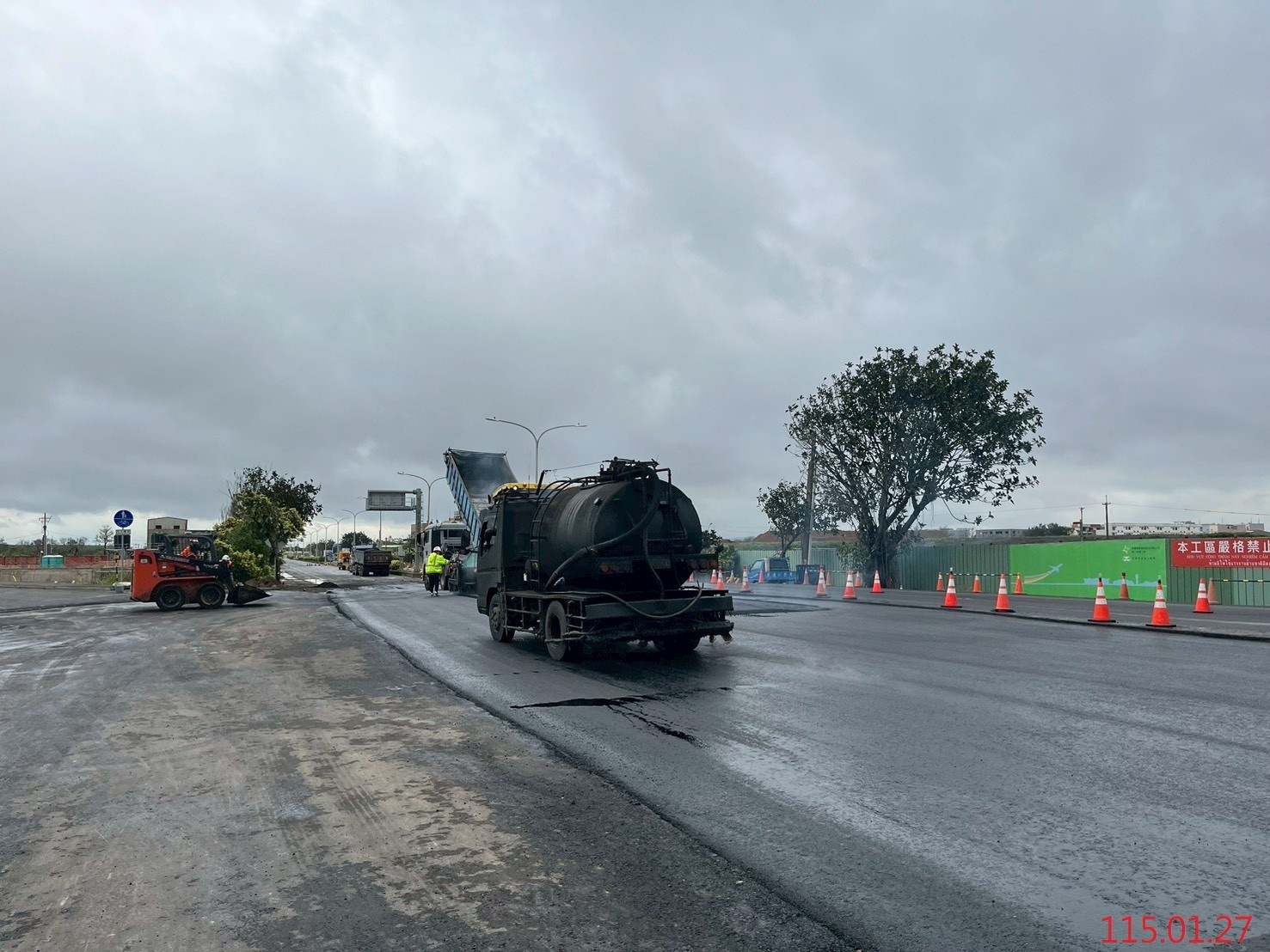 - 目前施作項目:第6工區:里程32K+300-400人行道級配鋪築、第1工區里程1K+540瀝青混凝土密級配第二層鋪築、第3工區:里程27K+600- 28K+390瀝青混凝土密級配第二層鋪築、第6工區:里程32K+460 標線繪製